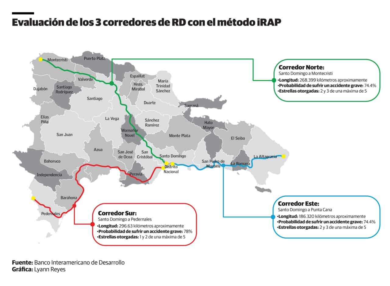 El estudio “Levantamiento de Información para la Evaluación de los Tres Corredores Viales Bajo la Metodología iRAP” fue realizado en marzo de 2021 por técnicos especializados en evaluación de carreteras, de la International Road Assessment Programme(iRAP, por sus siglas en inglés, el Ministerio de Obras Públicas con el apoyo del Banco Interamericano de Desarrollo(BID) y la Organización de Las Naciones Unidas(ONU).